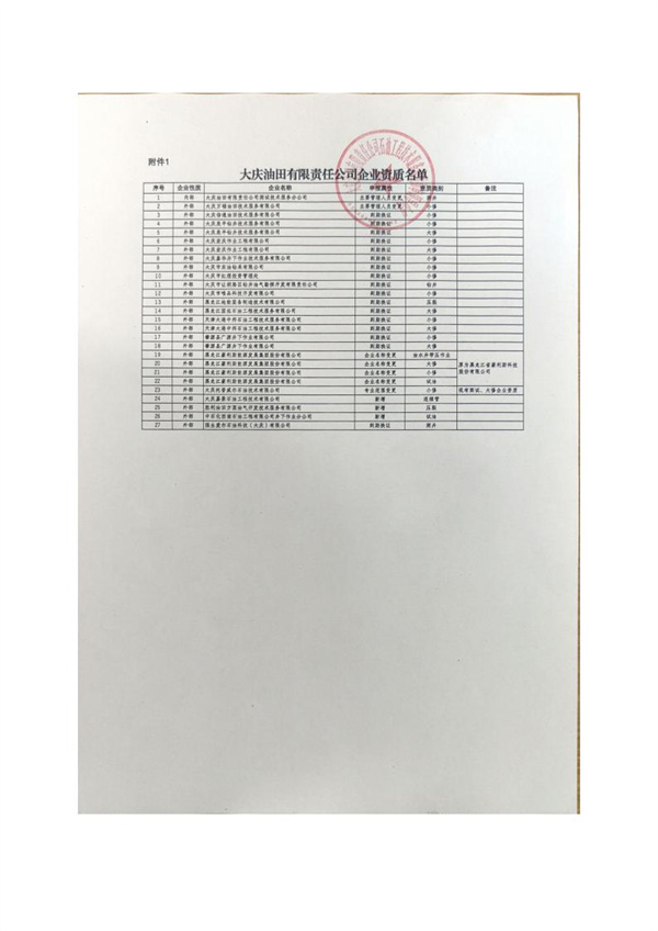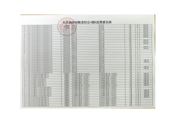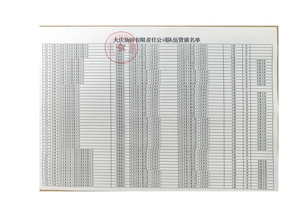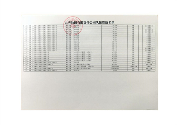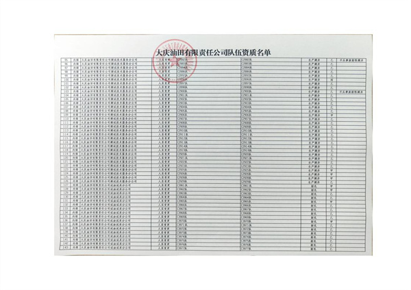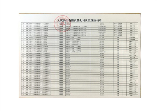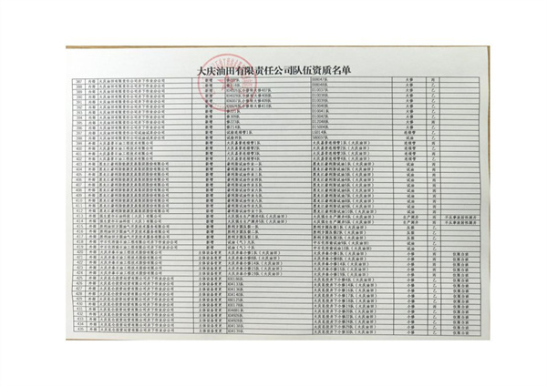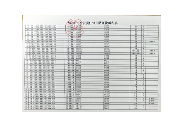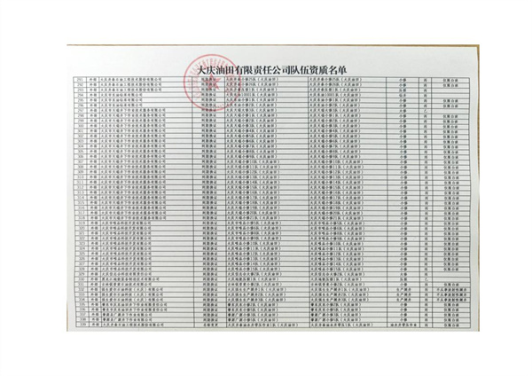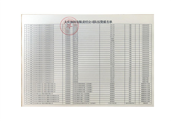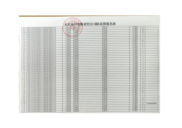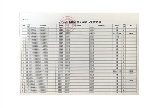 大慶東油15001隊(duì)(大慶油田)資質(zhì)證書